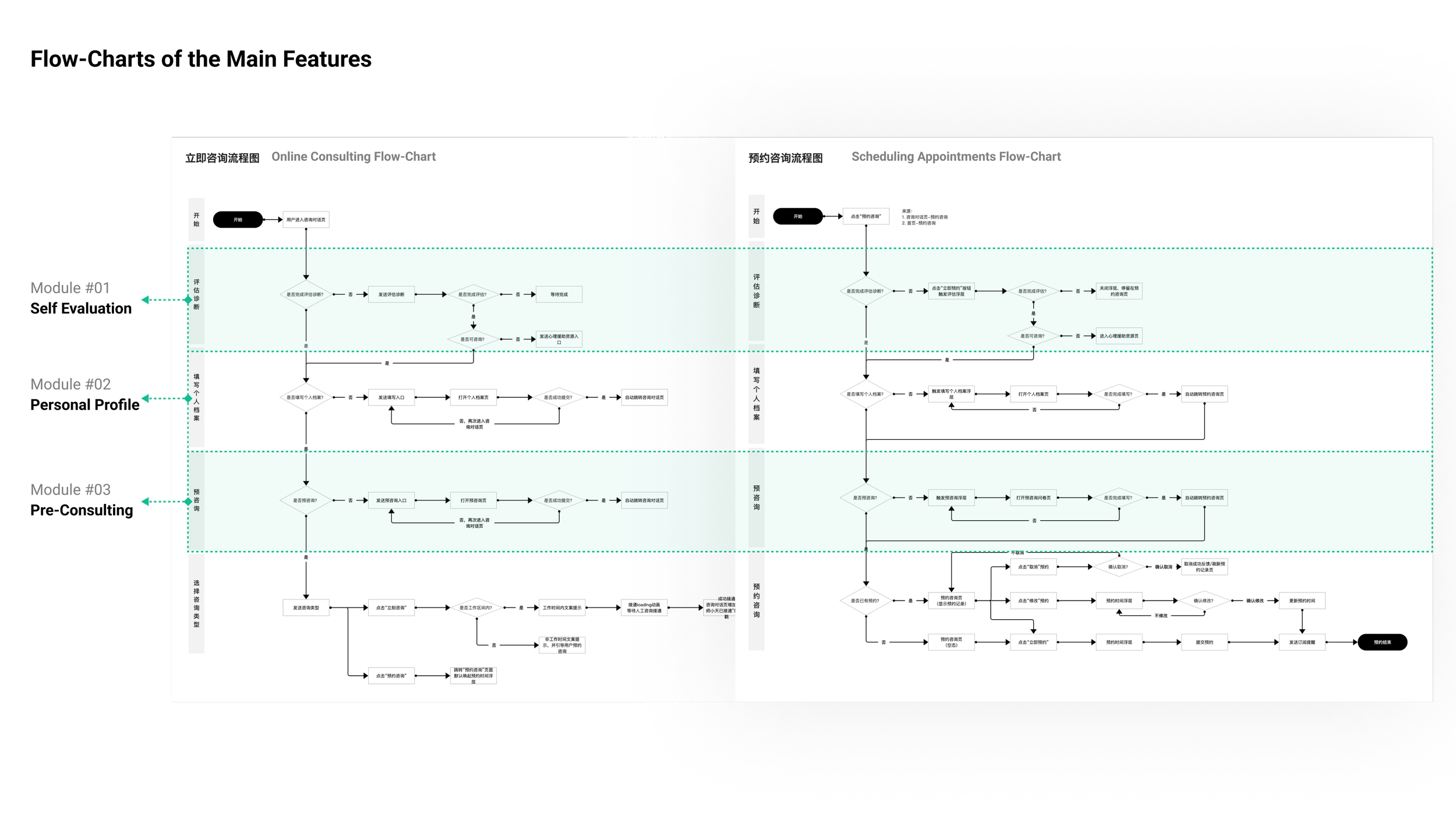 Online mental health consultation is Hearty’s key feature, allowing users to instantly connect with a consultant through the Immediate Consulting button. I optimized Hearty 2.0’s information architecture by surfacing and organizing main features on the homepage for easy access.